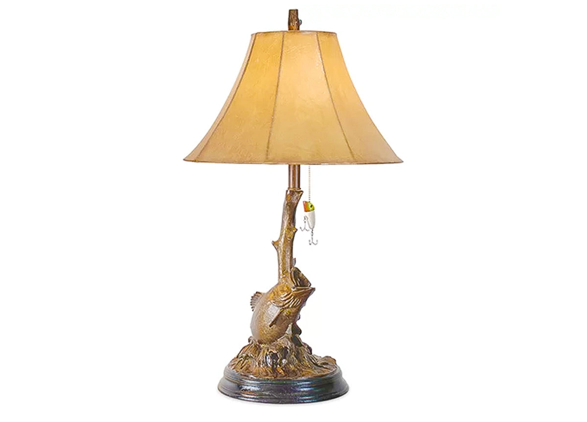This antique bronze Bass Table Lamp will look fantastic in any home or cottage.