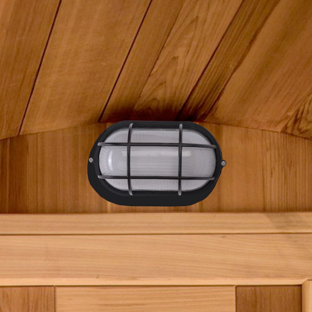This light has a sturdy frame and works great inside or outside your Sauna. A electrical hookup is required.