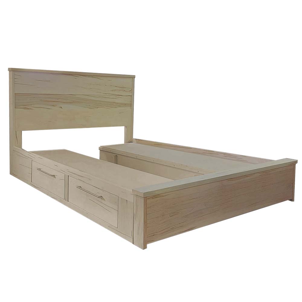 Our Newport Solid Wood Bed is crafted in Ontario from high-quality solid wormy maple or pine wood. Whether you're seeking a cozy cabin retreat or a farmhouse-inspired haven, this bed offers both style and utility. Enjoy the beauty of natural wood grains and the convenience of extra storage, all in one exquisite piece of furniture.