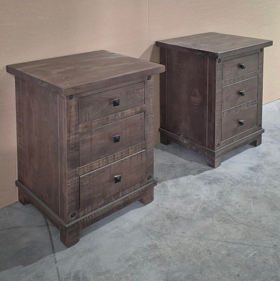 This set of two Timber Haven 3 Drawer Nightstands are the epitome of rustic-farmhouse styling. The 3 drawers give lots of storage and a little higher night stand to suite the height of your mattress. Made in Canada by a community of skilled artisans, each piece is made with time-honoured techniques with precision to ensure your bedroom set is crafted with the utmost care.